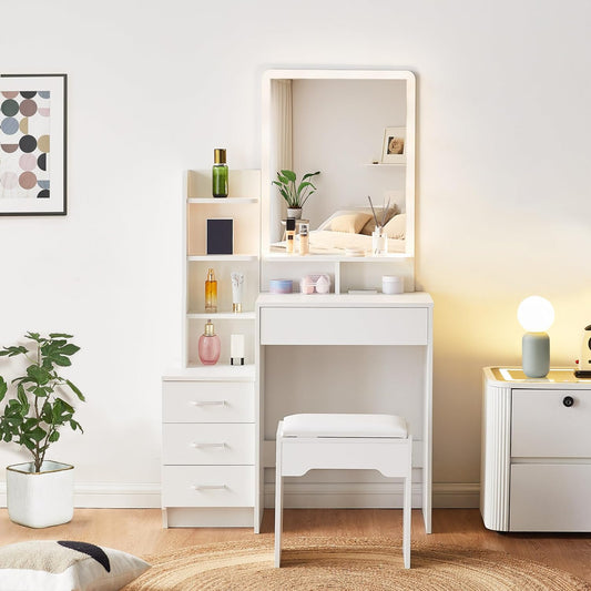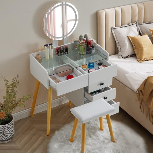 Τραπέζι Μπουντουάρ Μακιγιάζ Tουαλέτας Με Σκαμπό Κρεβατοκάμαρας Καθρέφτης Αφής Ρυθμιζόμενης Φωτεινότητας RV-T619W01