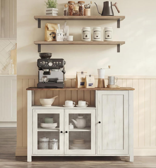 Μπουφές με φωτισμό Ντουλάπι Βοηθητικό Ράφι Κουζίνας με Συρόμενες πόρτες και συρτάρια 39,7 x 80,4 x 180,3 εκ. Παλαιωμένο Λευκό BB-K363W22