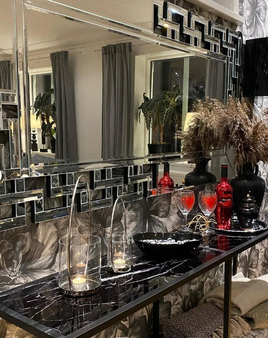 Τραπέζι Κονσόλα Μοντέρνα Έπιπλο Εισόδου Μπουφές Μέταλλο Γυαλί Όψη Μαύρο Μάρμαρο 1331697