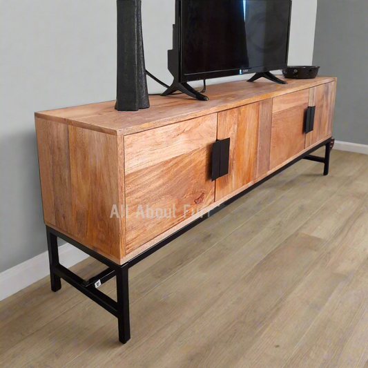 Έπιπλο Τηλεόρασης Χαμηλός Μπουφές από Μασίφ Ξύλο και Μεταλλικά Πόδια 1285863