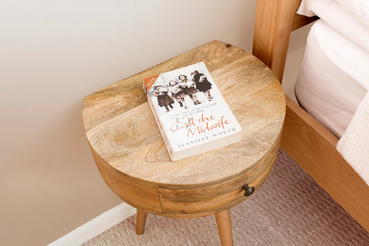 Μικρό Ημικυκλικό Κομοδίνο Μασίφ Ξύλο Μανγκο με Συρτάρι IN3279