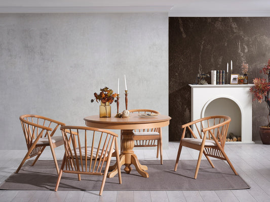Τραπέζι Κουζίνας Τραπεζαρίας Στρόγγυλο 118 εκ Επεκτεινόμενο 158 εκ με 4 Καρέκλες Σετ 117FRF1503