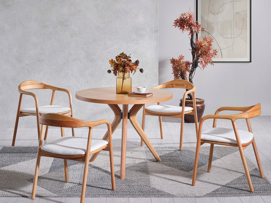 Τραπέζι Κουζίνας Τραπεζαρίας και Με 4 Καρέκλες σετ Στρόγγυλο 100 εκ Ροτόντα Μασίφ Ξύλο και MDF Οξυά 117FRF1410