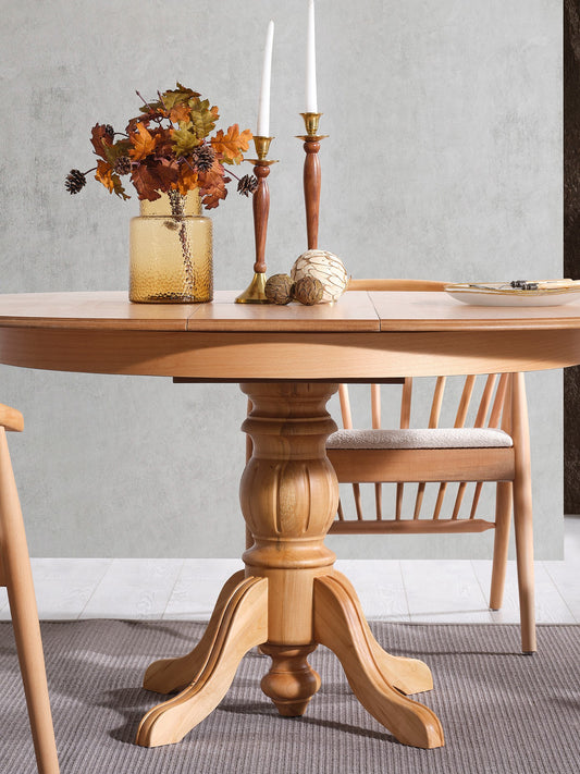 Τραπέζι Κουζίνας Τραπεζαρίας Ροτόντα Επεκτεινόμενη από 118-158 εκ Φυσικό Χρώμα Ξύλου 117FRF1403