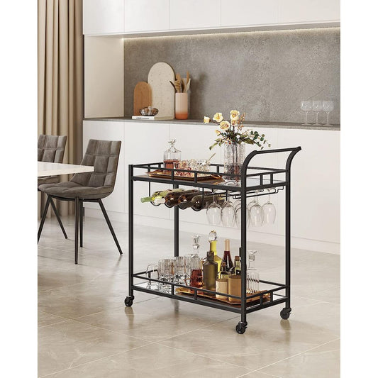Καρότσι Μπαρ Τρόλεϊ Κάβα Τραπεζαρίας με Καθρέφτη Βοηθητικό Τραπεζάκι Κουζίνας Μαύρο LR-C090B62