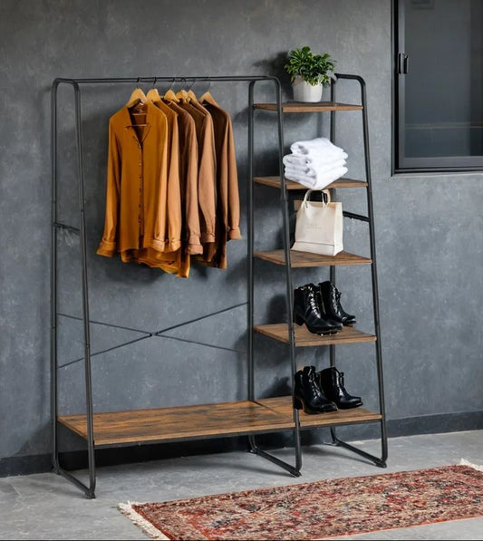 Κρεμάστρα Ρούχων Ανοιχτή Ντουλάπα Κρεβατοκάμαρας Δωματίου Ράφι Vintage Καφέ RGR-112B01