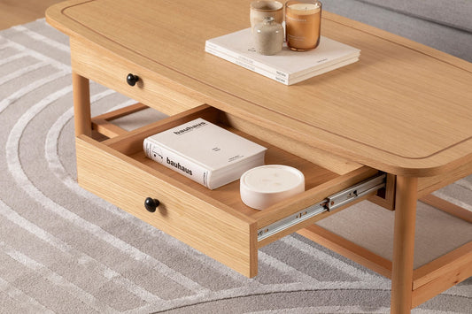 Τραπεζάκι Σαλονιού Καθιστικού Boho Φυσικό Χρώμα με 2 Συρτάρια 120x55x45 εκ 141HWR1104
