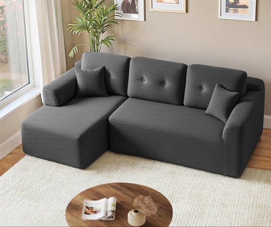 Γωνιακός Καναπές Κρεβάτι Αριστερή Γωνία Πολυμορφικός Εργονομικός Κάθισμα 43εκ Χωρίς Συναρμολόγηση για Σαλόνι Δωμάτιο επισκεπτών κρεμ και γκρί LCS-183WD01