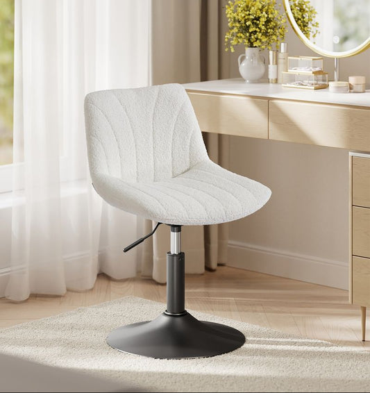 Καρέκλα Γραφείου Κρεμ Μπουκλέ Άνετη Καρέκλα Μπουντουάρ Εξοικονόμησης Χώρου Περιστρεφόμενη Ρυθμιζόμενου Ύψους OB-G027WD01