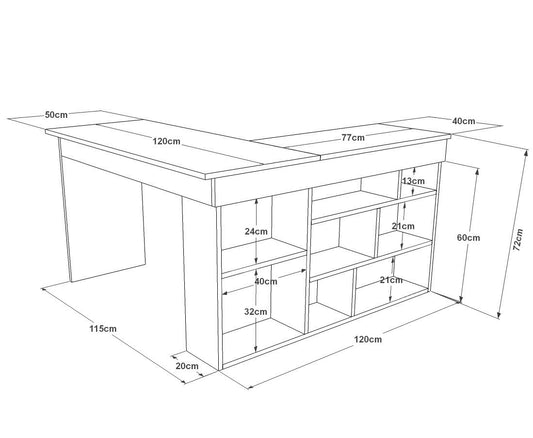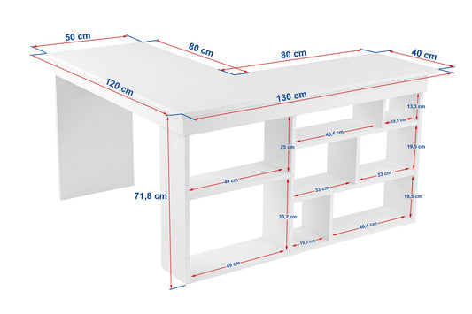 Μεγάλο Γωνιακό Γραφείο Υπολογιστή Μελέτης με Ράφια Γραφείο στο Σπίτι 129x120 εκ 956LCS1112