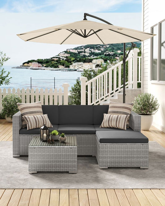 Möbelset Balkon Gartensofa Dreisitzer mit Couchtisch Kissen 6cm Balkon Wohnzimmer GG-F005B03