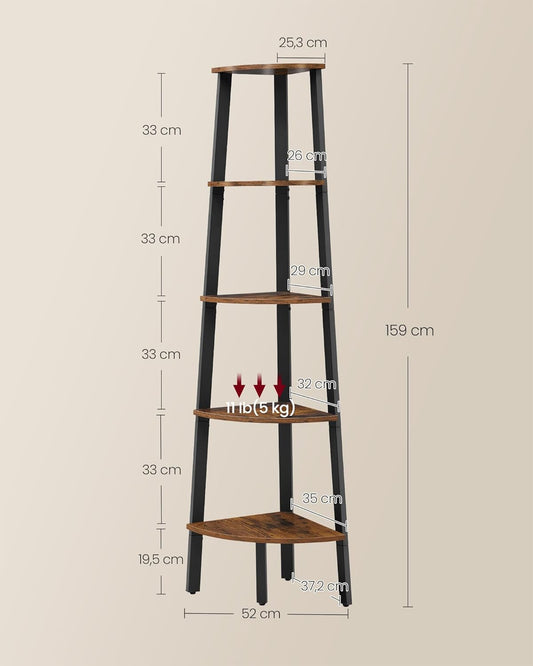 Eckregal Bücherregal mit 5 Regalen Wohnzimmer Schlafzimmer Vintage Braun LL-S35X
