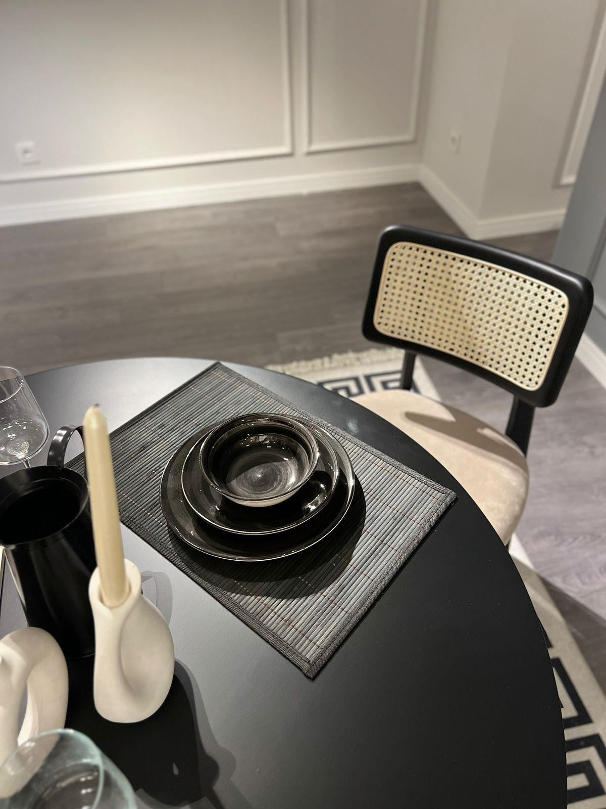 Ο συνδυασμός μαύρου και λευκού χρώματος σε αυτό το σετ δημιουργεί μια εντυπωσιακή αντίθεση που προσθέτει μια πινελιά κομψότητας σε κάθε χώρο τραπεζαρίας. Ο κομψός και μοντέρνος σχεδιασμός συνδυάζεται αβίαστα με οποιαδήποτε εσωτερική διακόσμηση, καθιστώντας το μια τέλεια προσθήκη στο σπίτι σας.
