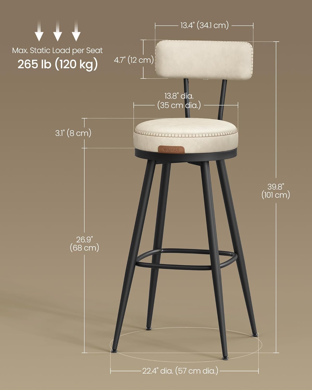 [Άνεση σε κάθε κάθισμα] Γλιστρήστε το χέρι σας πάνω από το λείο κάλυμμα και στη συνέχεια χαλαρώστε στην υποστηρικτική πολυτέλεια του χυτευμένου αφρού 58D πάχους 3,1". Αυτά τα σκαμπό μπαρ προσφέρουν μια άνετη εμπειρία καθίσματος που διαρκεί, αντέχοντας στη δοκιμασία του χρόνου.