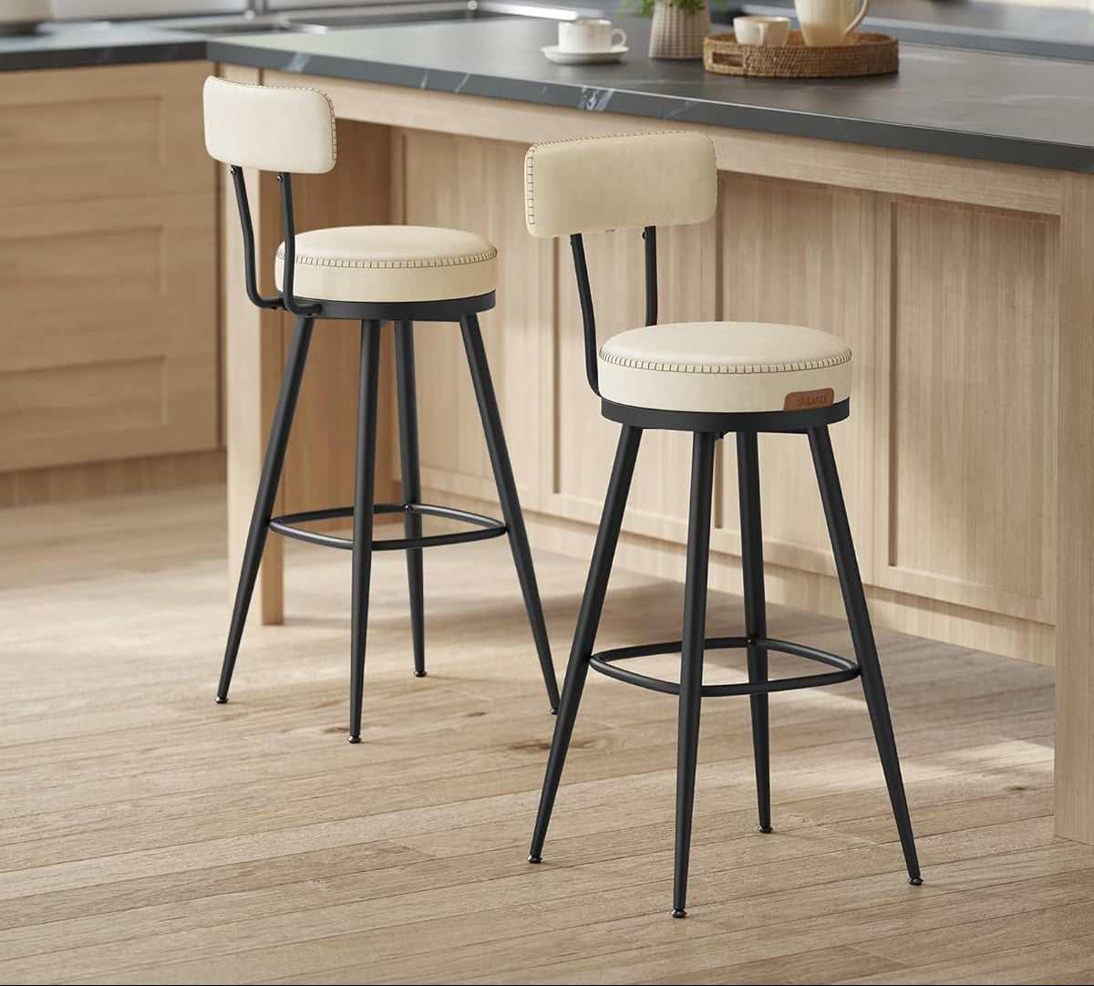 [Περιστρεφόμενο κάθισμα για απρόσκοπτη αλληλεπίδραση] Με τα σκαμπό μπαρ που διαθέτουν περιστρεφόμενο κάθισμα 360°, μπορείτε να στραφείτε ελεύθερα για να αλληλεπιδράσετε με όλους γύρω σας, κάνοντας κάθε κοινωνική εκδήλωση - είτε στην κουζίνα σας, στο μπαρ του σπιτιού σας είτε στην αίθουσα ψυχαγωγίας - μια χαρούμενη περίσταση.