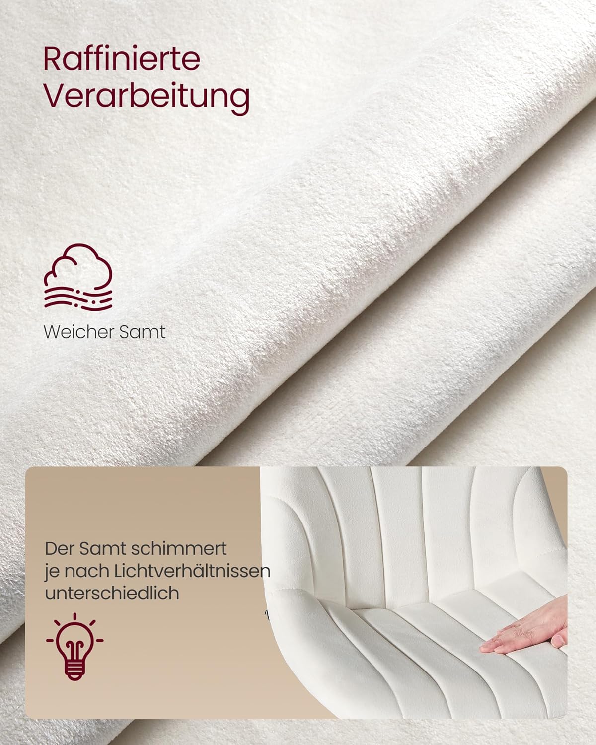 Κομψότητα μέχρι την τελευταία λεπτομέρεια: Οι μινιμαλιστικές γραμμές, η βελούδινη ταπετσαρία υψηλής ποιότητας και το στιβαρό ατσάλινο πλαίσιο προσδίδουν σε αυτά τα μοντέρνα σκαμπό μπαρ μια ιδιαίτερη κομψότητα και αναβαθμίζουν άμεσα το δωμάτιό σας. Φανταστείτε να απολαμβάνετε το πρωινό με τον σύντροφό σας, να εργάζεστε στον φορητό υπολογιστή σας ένα ηλιόλουστο απόγευμα, να μοιράζεστε ένα ποτήρι κρασί με έναν φίλο ή να χαλαρώνετε στο νιπτήρα σας – όλα με άνεση σε αυτά τα κομψά σκαμπό μπαρ κουζίνας.