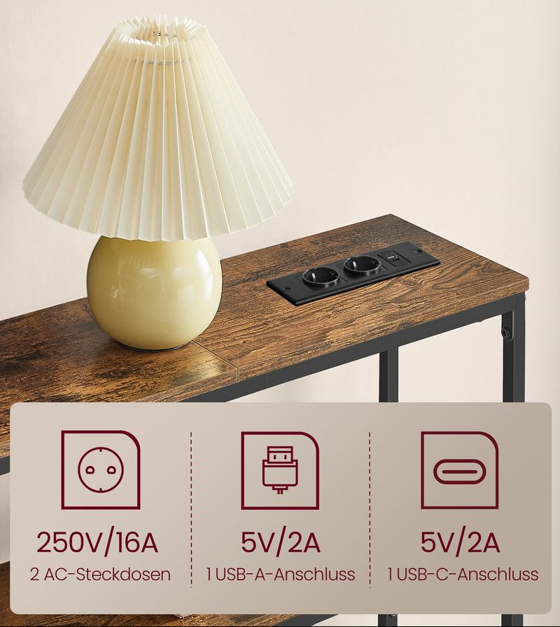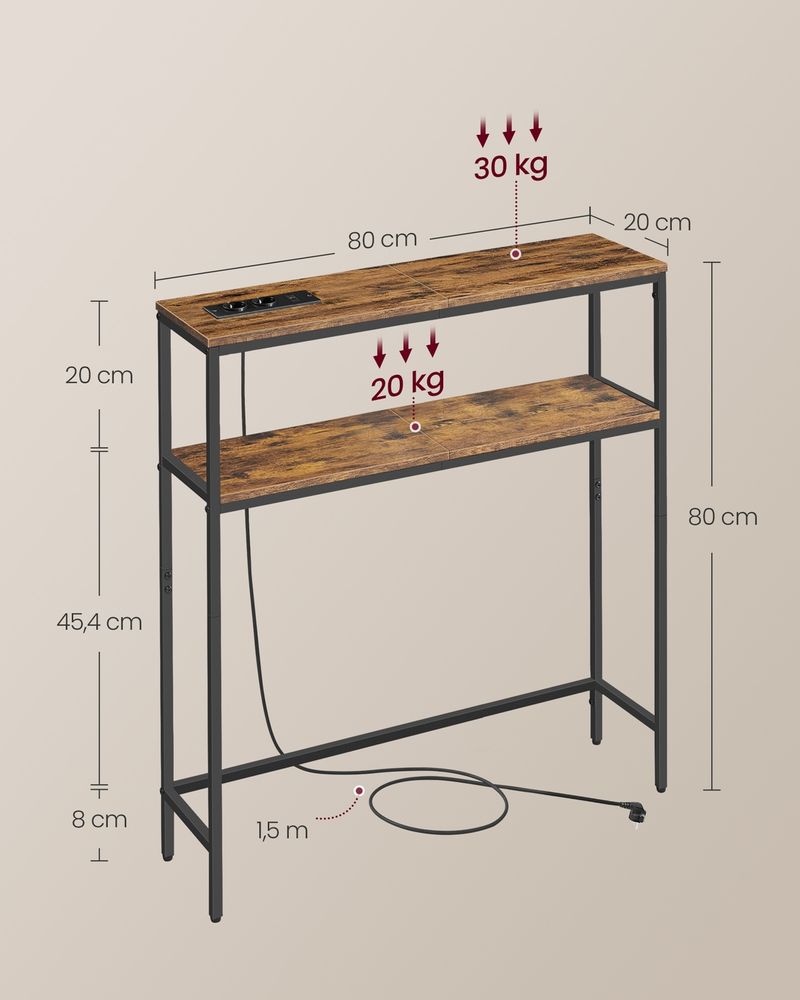 Τραπέζι Κονσόλα Εισόδου 80x20 εκ Με πολύπριζο και Θύρες USB Βοηθητικό Τραπεζάκι Σαλονιού LN-T135KD01