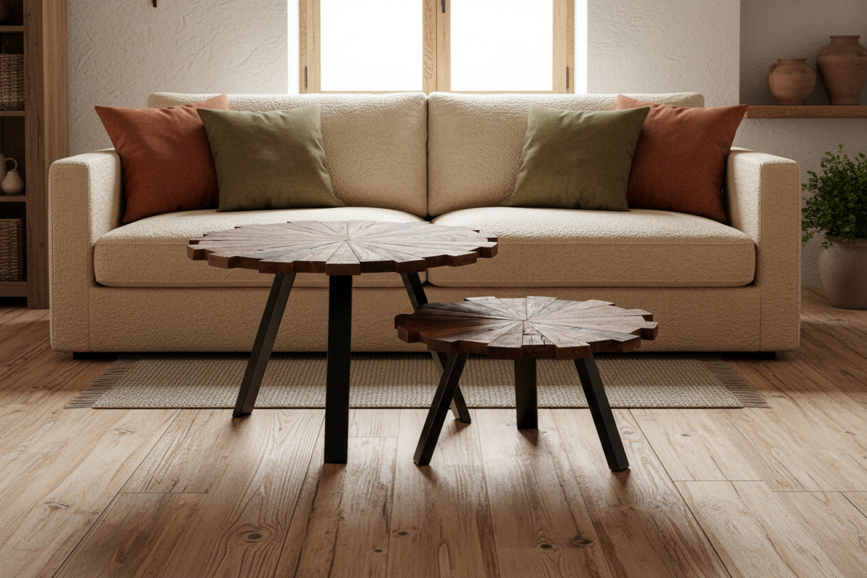 Ανακαλύψτε την επιτομή της κομψότητας και της βιωσιμότητας με τα εξαιρετικά ξύλινα τραπεζάκια σαλονιού μας. Αυτά τα προσεκτικά κατασκευασμένα κομμάτια υπόσχονται να μεταμορφώσουν τον χώρο διαβίωσής σας σε ένα καταφύγιο στυλ και κομψότητας.