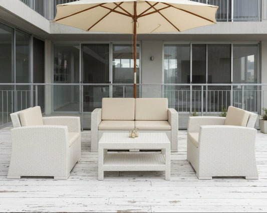 Λευκό Σαλόνι Κήπου Μπαλκονιού Καναπές με 2 Πολυθρόνες Τραπεζάκι Σετ Κήπου 4 τεμ. 53.0300