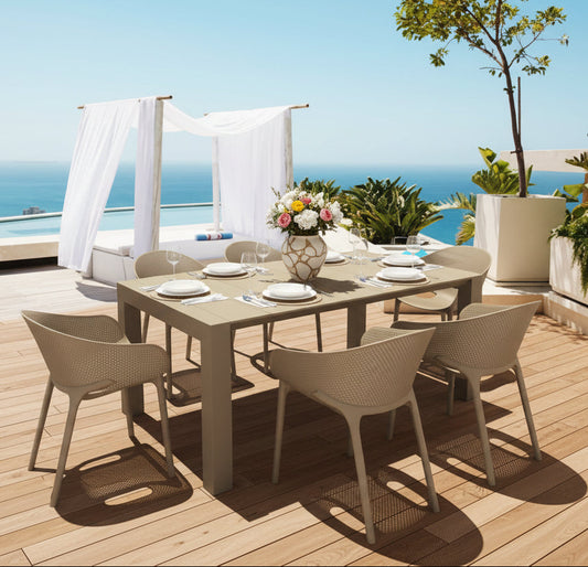 Τραπέζι Πολυπροπυλενίου Επεκτεινόμενο Κήπου Σετ Τραπεζαρία με 6 Καρέκλες Μπεζ 20.9971