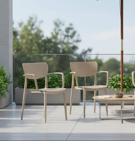 Τραπεζαρία Κήπου Σετ με 4 Καρέκλες Μπεζ Πολυπροπυλενίου Τραπέζι Μπαλκονιού με Πολυθρόνες 20.9973