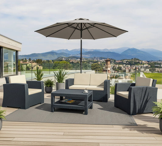 Σαλονάκι Μπαλκονιού Έπιπλα Κήπου 4 τεμ σετ Σαλόνι Βεράντας Καναπές Πολυθρόνες Μαύρο-Γκρί B34-GGF004B06