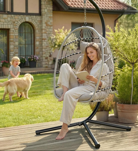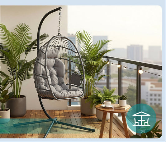 Κρεμαστή Κούνια εξωτερικού χώρου Ρυθμιζόμενου ύψους Στιβαρό Σκελετό Πλαϊνή τσέπη με Παχύ Μαξιλάρι για Σαλόνι Κήπος Μπαλκόνι Γκρι GD-C050GZ01