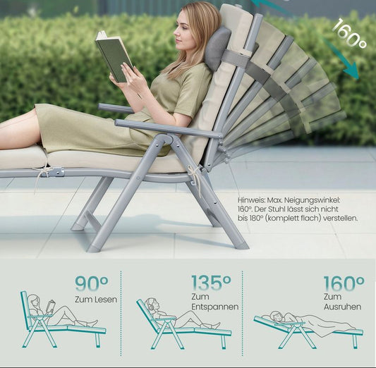 Μπεζ Ξαπλώστρα Μεγάλης Αντοχής Σεζλόνγκ με Ρυθμιζόμενη Πλάτη και Μαξιλάρι GC-B024WZ02