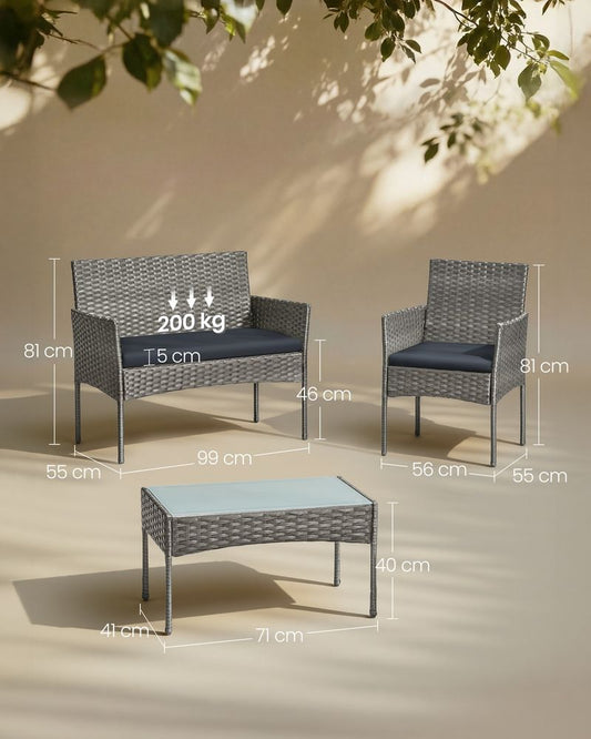 Σαλόνι Κήπου Μπαλκονιού σετ 4 τεμ. 2 Καρέκλες Πολυθρόνες με Αδιάβροχα Χοντρά Μαξιλάρια Καναπεδάκι 1 Τραπεζάκι για Βεράντα Μπαλκόνι GG-F040GZ01