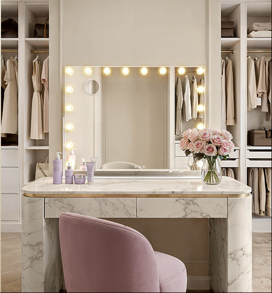 Τραπέζι Μπουντουάρ Μακιγιάζ Tουαλέτας Με Σκαμπό Κρεβατοκάμαρας Καθρέφτης Αφής Ρυθμιζόμενης Φωτεινότητας RV-T619W01
