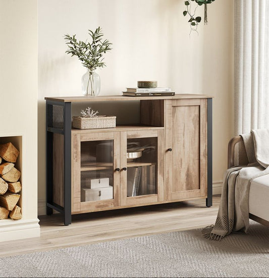Ξύλινος Μπουφές Τραπεζαρίας με Ντουλάπια & Ράφια Δρυς 150εκ Κονσόλα 393MRD1243