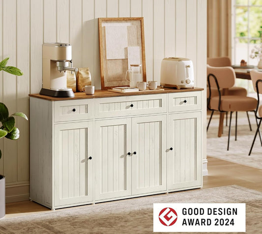 Μπουφές Κουζίνας με Πάγκο Ντουλάπι Βοηθητικό Ράφι Κουζίνας Vintage Λευκό/Μελί Συναρμολόγηση Χωρίς Εργαλεία BB-K376WJ02