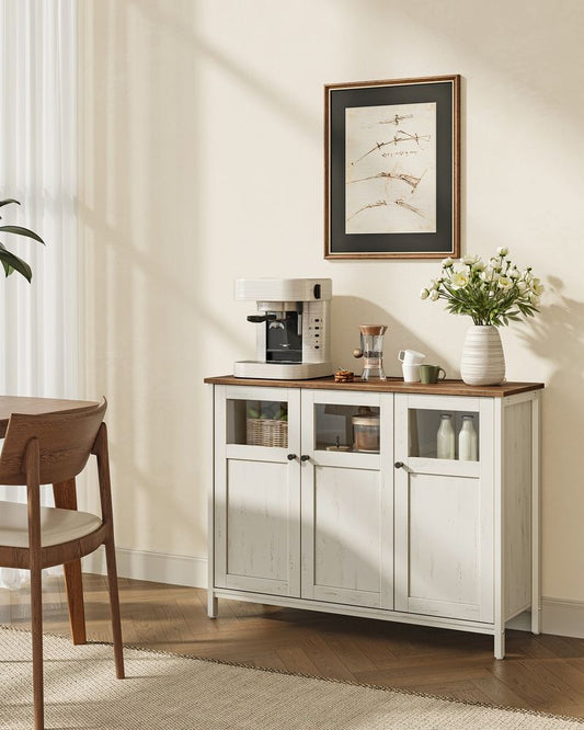 Μπουφές Κονσόλα Εισόδου Ντουλάπι Κουζίνας Ράφι Κουζίνας Έπιπλο Τηλεόρασης 110 x 33 x 75 εκ Παλαιωμένο Λευκό LS-C096WJ02