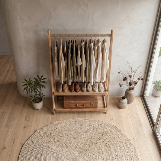Κρεμάστρα Ρούχων Ανοιχτή Ντουλάπα Σταντ Ρούχων Ράφι Κρεβατοκάμαρας Μασίφ Ξύλο OG-AH352