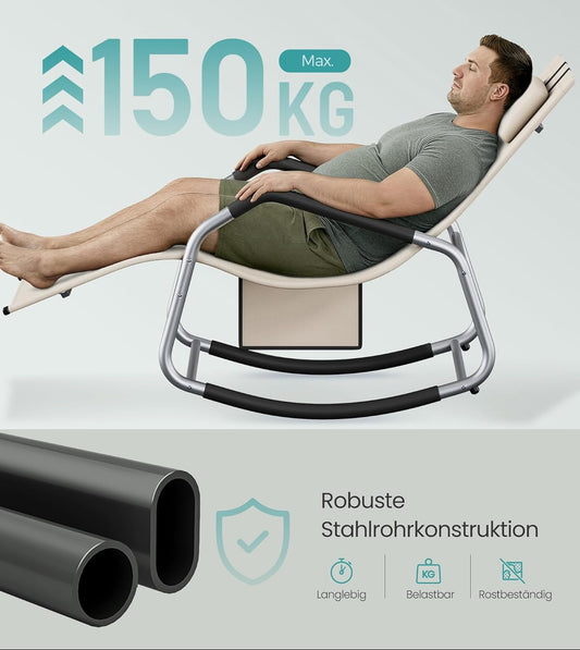 Πολυθρόνα Σεζλόνγκ Κήπου Μπαλκονιού Εργονομική Μεγάλης αντοχής έως 150 κιλά Ξαπλώστρα Κουνιστή με Προσκέφαλο GC-B230WZ01