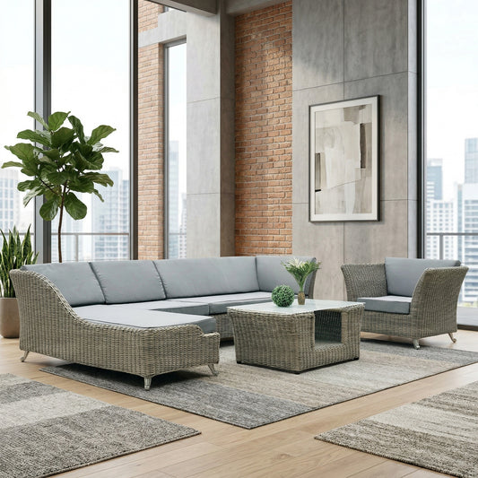 Μεγάλο Γωνιακό Σαλόνι Κήπου Αλουμινίου Γωνιακός Καναπές Πολυθρόνα και Τραπεζάκι 06.7010