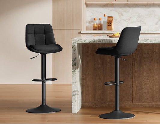 Σκαμπό για Πάσο Κουζίνας Σετ 2 τεμ Εργονομικό Κάθισμα Νησίδας Μπαρ Ρυθμιζόμενο Ύψος 63-84 εκ Μεγάλη Σταθερή Βάση Μαύρο Βελούδο LJ-B198BH01