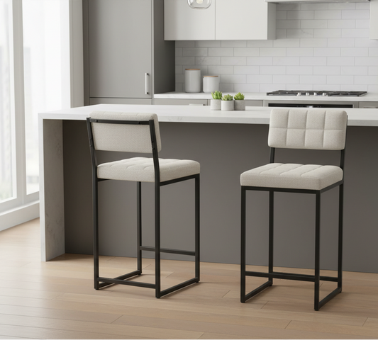 Σκαμπό για Πάσο Κουζίνας Σετ 2 τεμ Ύψος καθίσματος 66εκ Σκαμπό Μπαρ Υφασμα Κάθισμα Νησίδας Κρεμ 225ALN1119