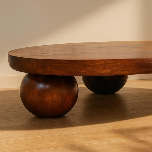 Στρογγυλό Τραπεζάκι Σαλονιού Καστανιά 80εκ από Μασίφ Ξύλο μάνγκο με σφαιρικά πόδια IN3573