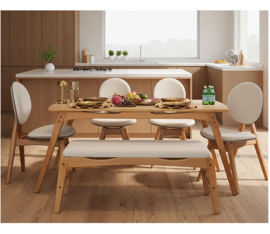 Τραπεζαρία με 4 καρέκλες και Παγκάκι σετ Τραπέζι Κουζίνας Τραπεζαρίας Σκανδιναβικό Σετ με 4 Καρέκλες Σκαμπό Τραπέζι 160 εκ 998VOW2160