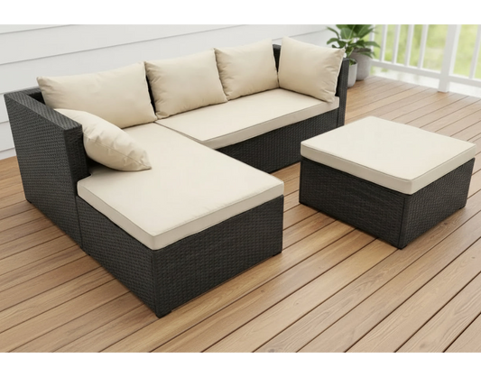 Σαλόνι Μπαλκονιού Καναπές Κήπου Βεράντας Γωνιακός Τριθέσιος Με Μαξιλάρια και Σκαμπό Σαλόνι Μπαλκονιού POS-162833249