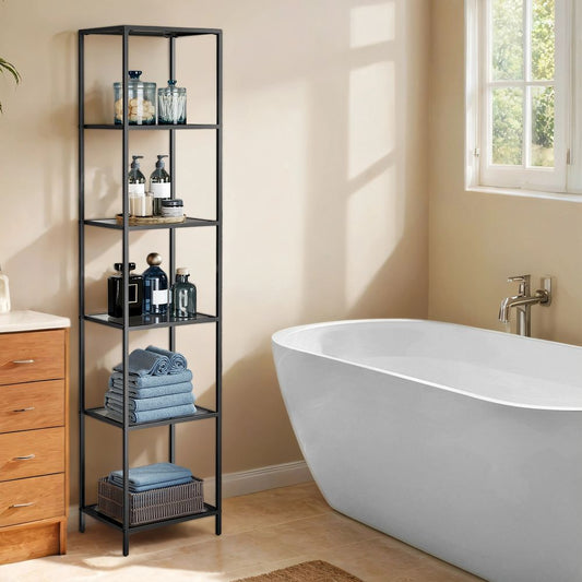 Ψηλό Μοντέρνο Ράφι Βιβλιοθήκη Μαύρη Μεταλλική Φιμέ Τζάμι για Σαλόνι Υπνοδωμάτιο Μπάνιο LG-T500G01
