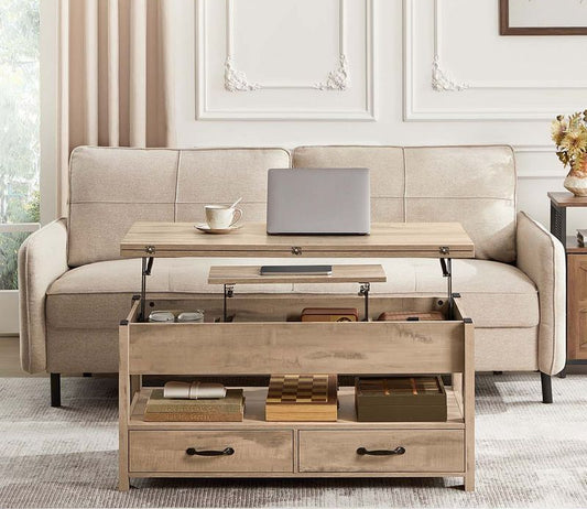 Τραπεζάκι Σαλονιού 50 x 100 εκ. Με Ρυθμιζόμενο Ύψος Βοηθητικό Τραπέζι Καθιστικού Καναπέ Κρυφός Αποθηκευτικός Χώρος LC-TB35209B22