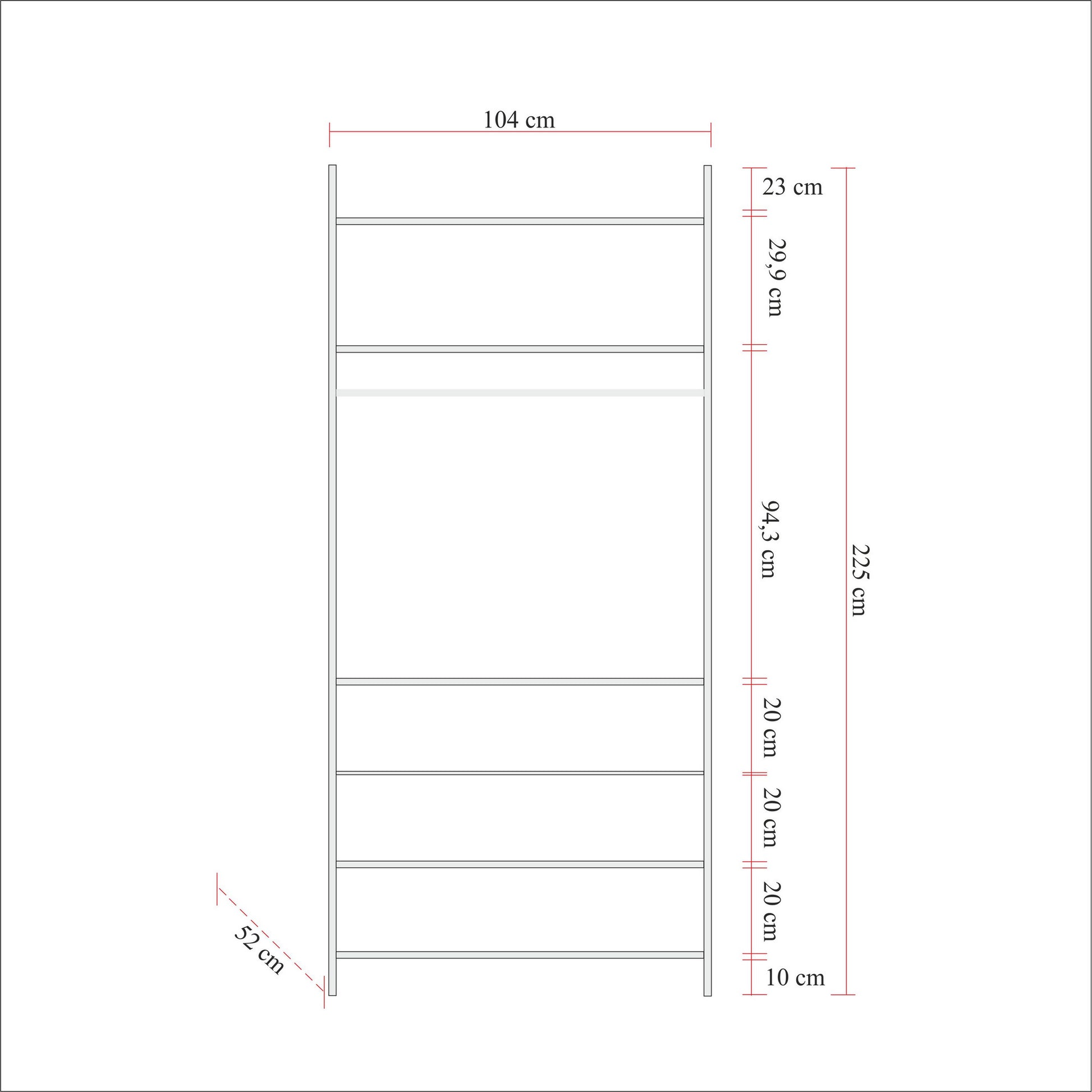 Μέγεθος ντουλάπας: Πλάτος: 104cm, Ύψος: 225cm, Βάθος: 52cm