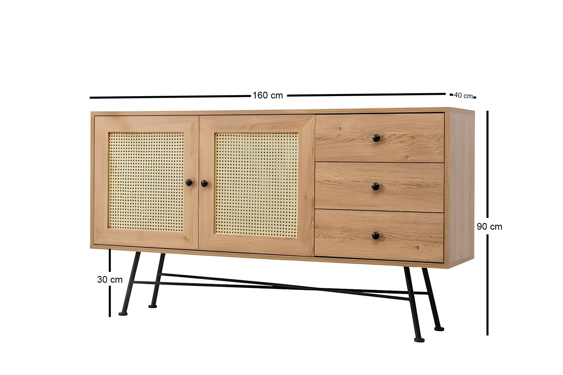 Κονσόλα Εισόδου Μπουφές Boho Με Συρτάρια και Ντουλάπι Φυσικό και Μαύρο Χρώμα 160x90x40 εκ