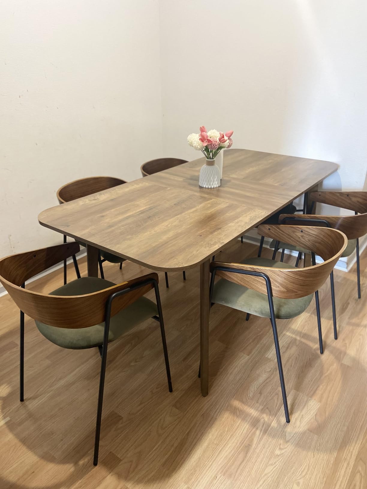 Η ξύλινη όψη και οι καθαρές γραμμές προσδίδουν στην τραπεζαρία ένα μοντέρνο στυλ και μια ζεστή γοητεία εξοχικού σπιτιού. Χάρη στην επεκτεινόμενη επιφάνεια, μπορείτε να ρυθμίσετε το μήκος του τραπεζιού από 140 cm σε 160 cm και 180 cm για να φιλοξενήσει 4 έως 8 άτομα, ανάλογα με τις ανάγκες σας. Η επιφάνεια του τραπεζιού είναι ανθεκτική στη θερμότητα έως και 140°C, ενώ τα πόδια και το πλαίσιο από μασίφ ξύλο εξασφαλίζουν καλή φέρουσα ικανότητα. Το στενό κενό μεταξύ των φύλλων εμποδίζει τον εγκλωβισμό των δακτύλων. Τα κουμπώματα ασφαλείας διευκολύνουν την εγκατάσταση των επεκτάσεων. Κατάλληλο για οικογενειακά γεύματα, μελέτη ή εργασία, αυτό το ευέλικτο τραπέζι μπορεί να χρησιμοποιηθεί για πολλούς σκοπούς.