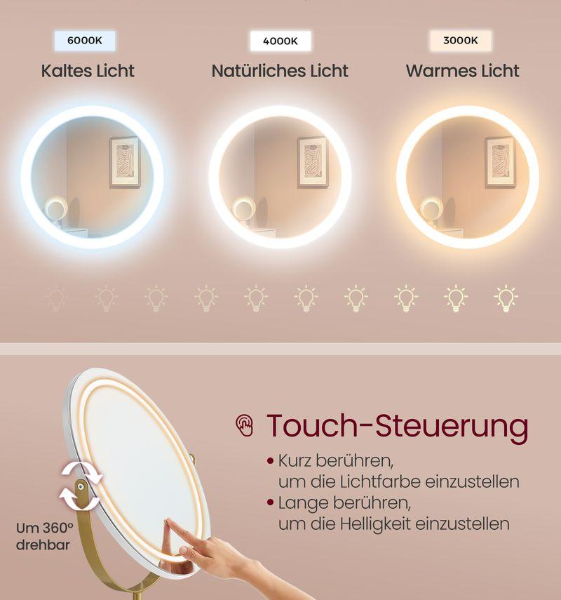 Με τον περιστρεφόμενο σχεδιασμό, μπορείτε να προσαρμόσετε τον καθρέφτη όπως χρειάζεται. Με το χειριστήριο αφής μπορείτε να αλλάξετε το χρώμα και την ένταση του φωτός για άψογο μακιγιάζ