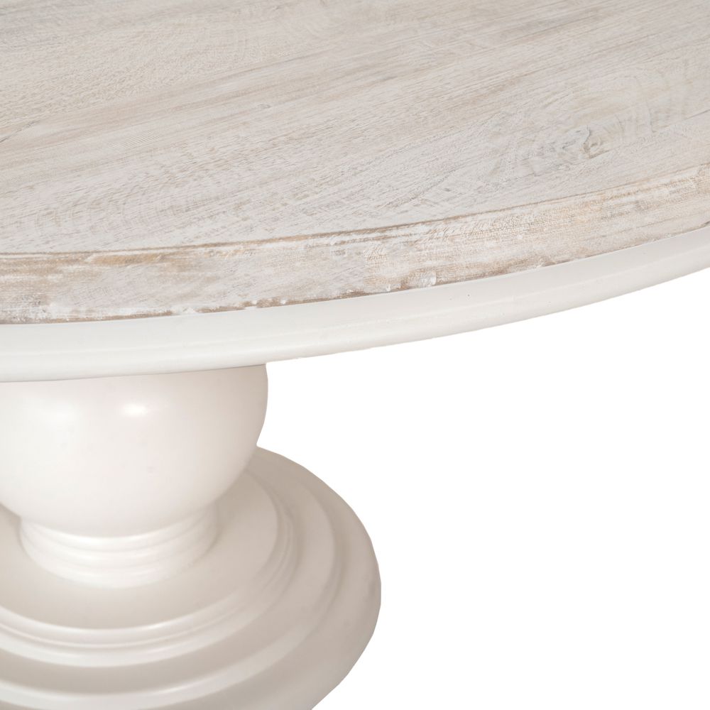 Τραπέζι Τραπεζαρίας Ροτόντα Μασίφ Ξύλο 152 εκ Στρόγγυλο Λευκό Παλαιωμένο Vintage 85256