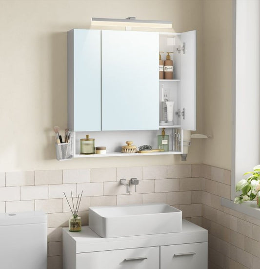 Ντουλάπι Καθρέφτη Μπάνιου με φωτισμό Πολύμπριζο Ντουλάπι Μπάνιου Τοίχου μοντέρνο λευκό γκρί BB-K126W01