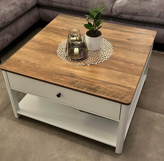 Τραπεζάκι Σαλονιού Κεντρικό Καθιστικό Τετράγωνο Λευκό με Συρτάρια LC-T207T14